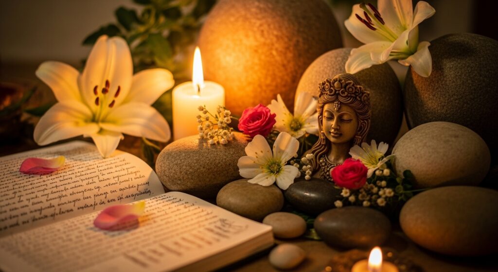 Un altar espiritual femenino es un espacio simbólico dedicado a honrar, canalizar y fortalecer la energía sagrada del principio femenino en tu vida. No se trata solo de colocar objetos bonitos sobre una mesa, sino de crear un punto de conexión consciente entre tu mundo interior y las fuerzas espirituales que representan intuición, protección, creatividad, amor propio y transformación.