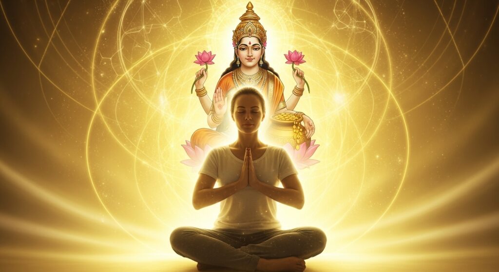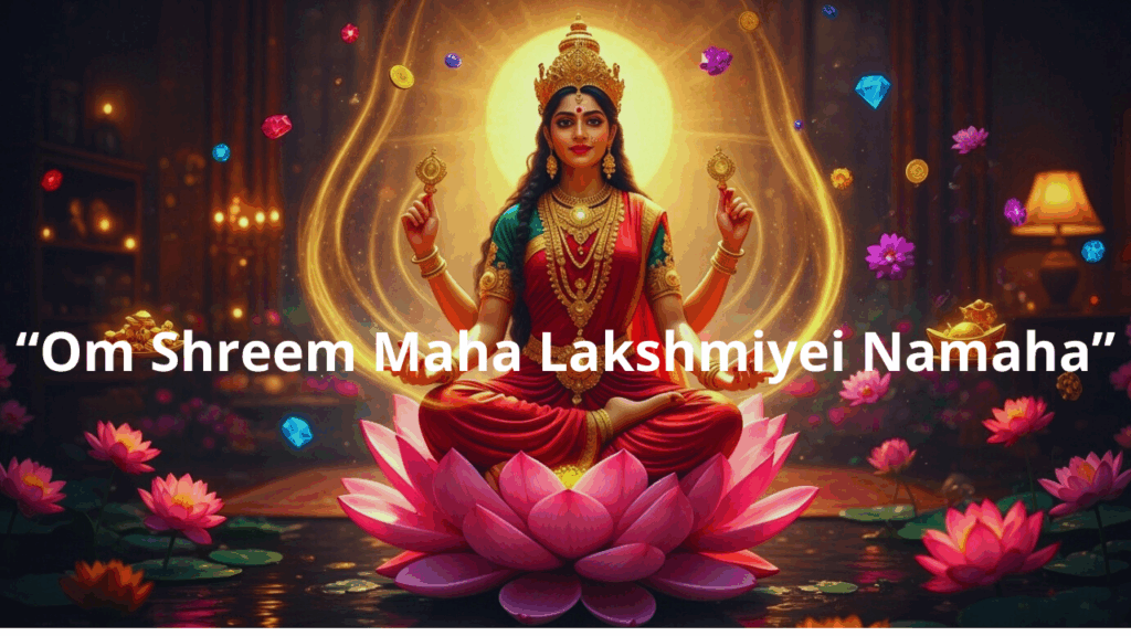 “Om Shreem Maha Lakshmiyei Namaha” — potente para activar prosperidad y bendiciones. - Meditación con el loto dorado: