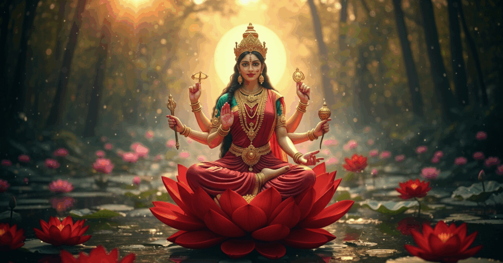 ¿Por Qué la Diosa Lakshmi Tiene 4 Brazos? Símbolos Sagrados Revelados